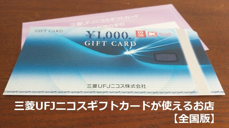このページは、三菱UFJニコスギフトカードの基本情報やコンビニ・ネットショッピングでの利用、全国の利用可能店舗をカテゴリ別に紹介した「三菱UFJニコスギフトカードが使えるお店【全国版】」です。